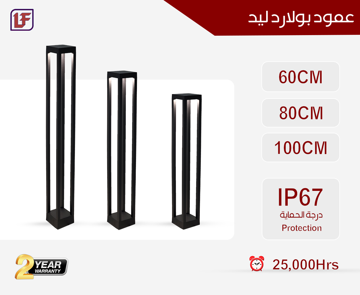 • LED bollard lights – available in 60CM, 80CM, and 100CM heights